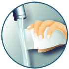 •Très efficace SANS détergent, uniquement avec de l’eau!